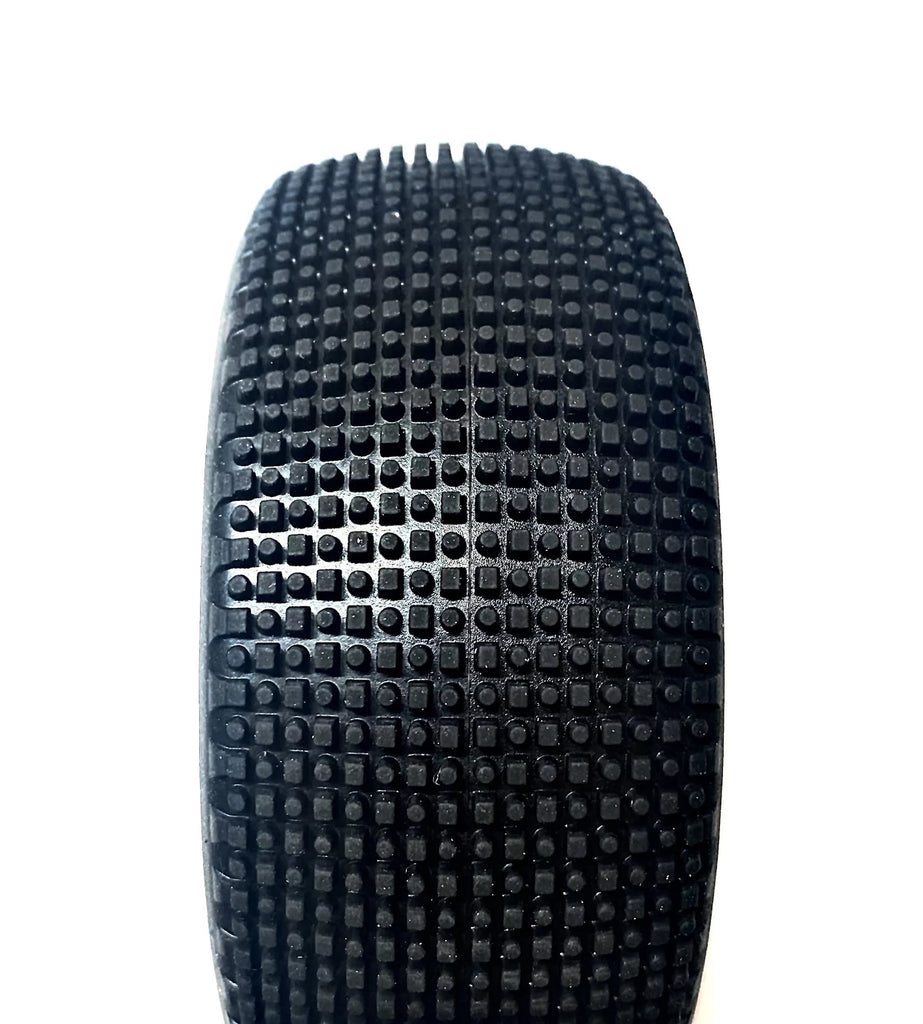 The New DIALED-RC Version 11 tire is a densely packed square/round pin hybrid pattern designed to work in loamy and dusty conditions while still providing incredible tread life.