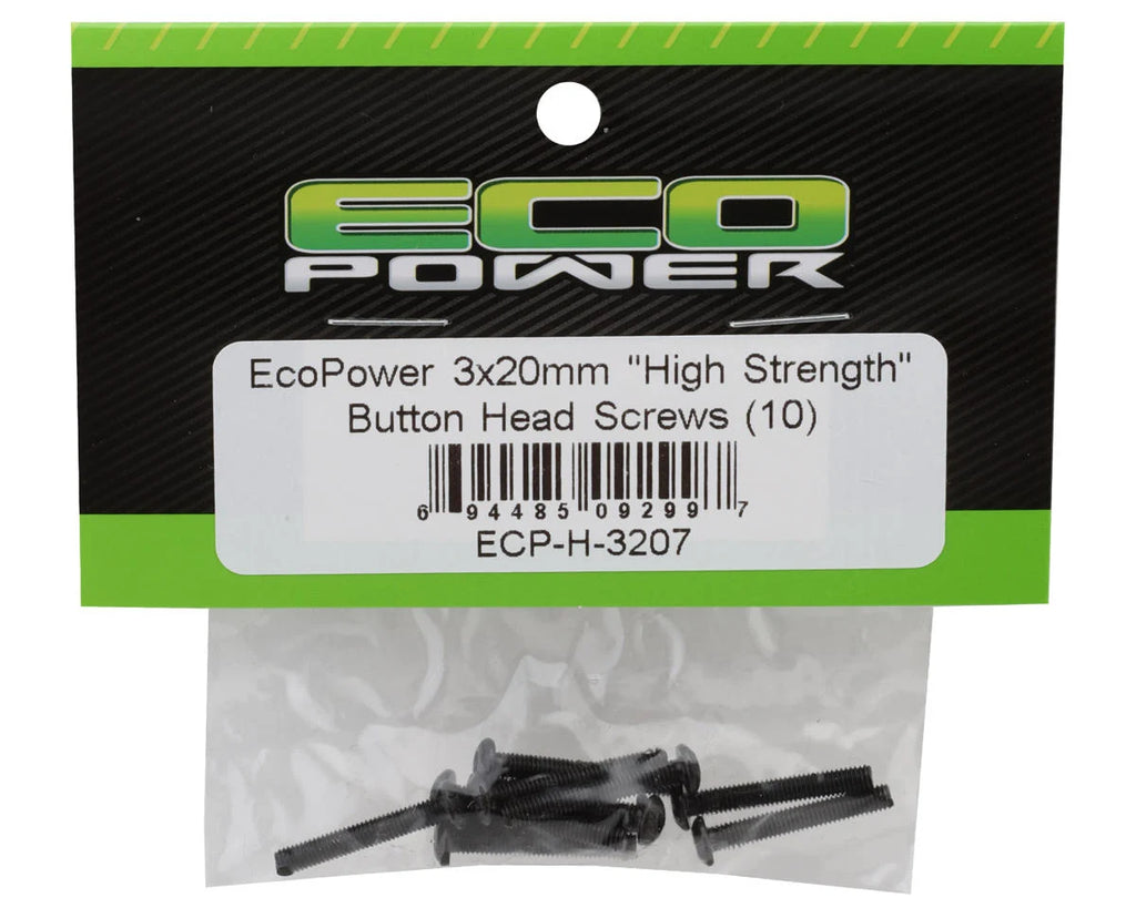 EcoPower 3mm "High Strength" Steel Button Head Screws (10) (3x20mm) - ECP-H-3207