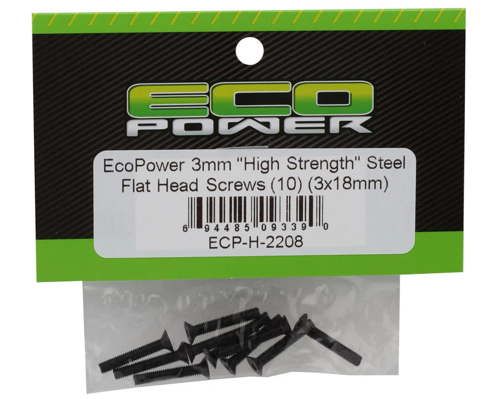 EcoPower 3mm "High Strength" Steel Flat Head Screws (10) (3x18mm) - ECP-H-2208