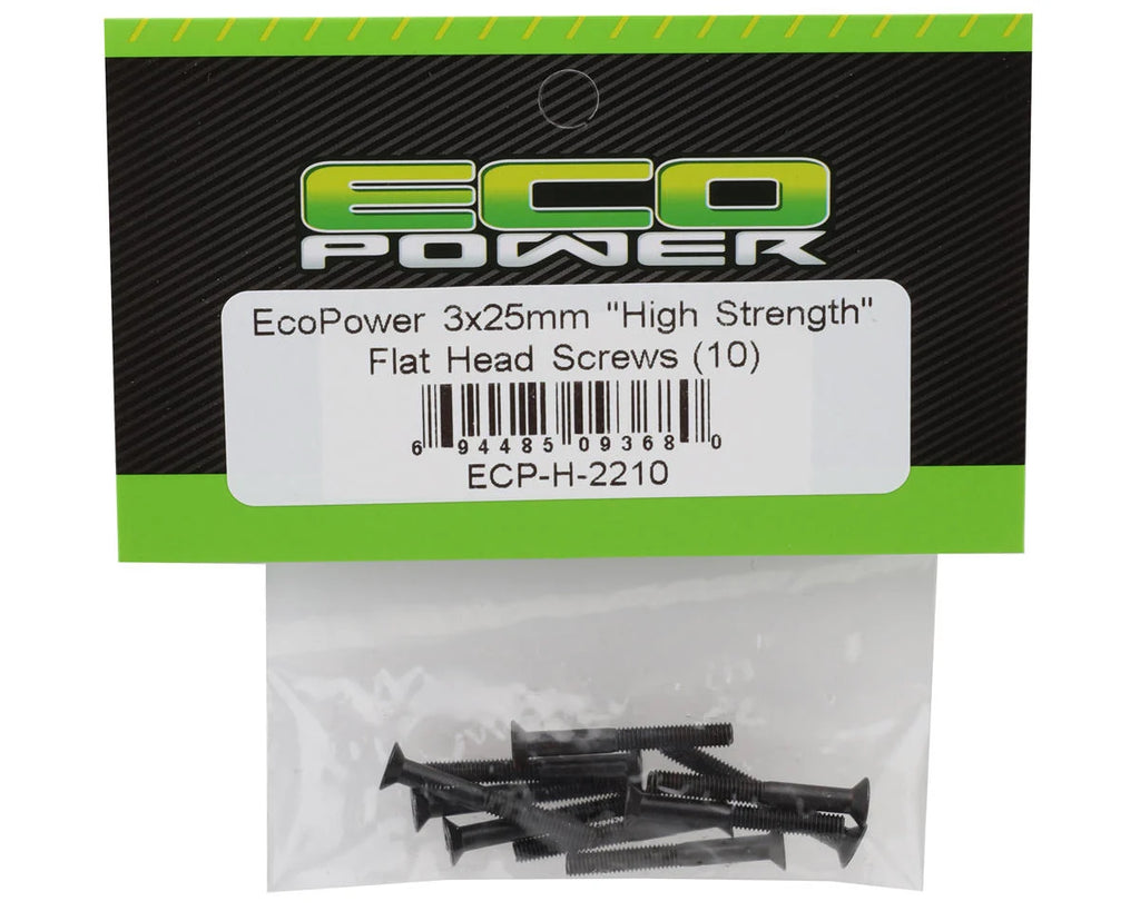 EcoPower 3mm "High Strength" Steel Flat Head Screws (10) (3x25mm) - ECP-H-2210
