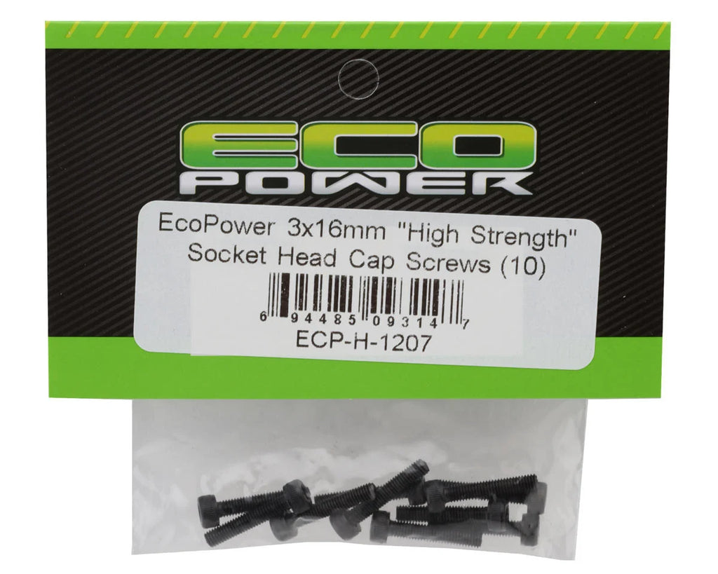 EcoPower 3mm "High Strength" Steel Socket Head Cap Screws (10) (3x16mm) - ECP-H-1207