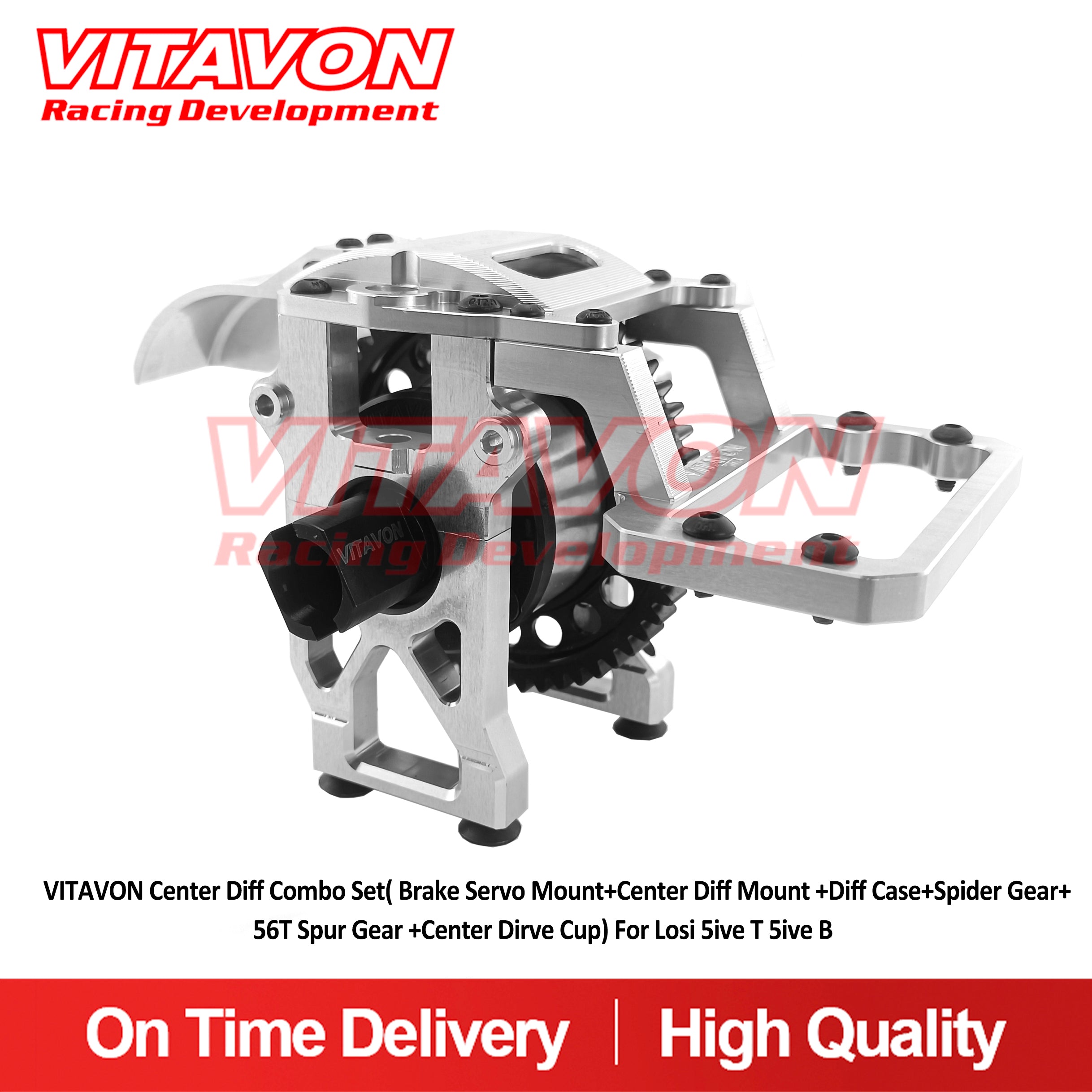 Product Name : VITAVON Center Diff Combo Set( Brake Servo Mount+Center Diff Mount +Diff Case+Spider Gear+ 56T Spur Gear +Center Dirve Cup) For Losi 5ive T 5ive B
