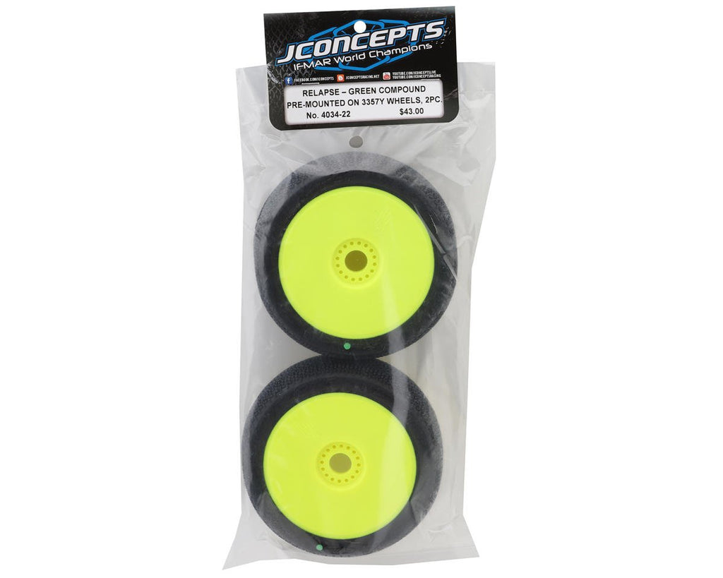 JConcepts Relapse Pre-Mounted 1/8th Buggy Tires (Yellow) (2) (Green) - JCO4034-22