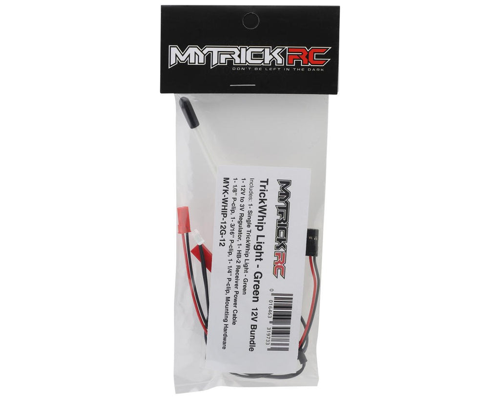 MyTrickRC TrickWhip Super Bright Scale Whip Light Tube (Green) (12V) w/12V-3V Voltage Regulator & Receiver Cable - MYKWHIP-12G-12