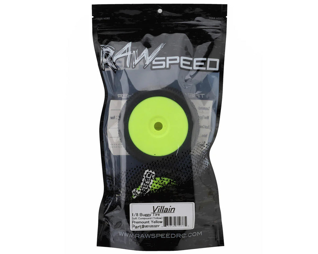 Raw Speed RC Villain 1/8 Buggy Pre-Mounted Tires (Yellow) (2) (Soft)