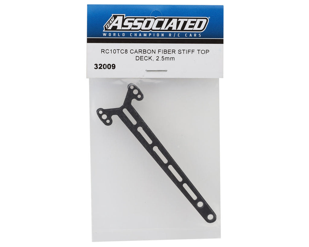 Team Associated RC10TC8 2.5mm Carbon Fiber Stiff Top Deck. This replacement stiff top deck is intended for the RC10TC8 platform.